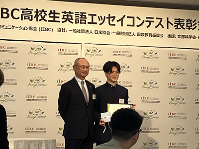 仙台育英学園高等学校 秀光コース1年の圡屋遼人さんが、「第17回 IIBC高校生英語エッセイコンテスト」において、個人部門 最優秀賞と日米協会会長賞の二つの賞を同時に受賞しました。