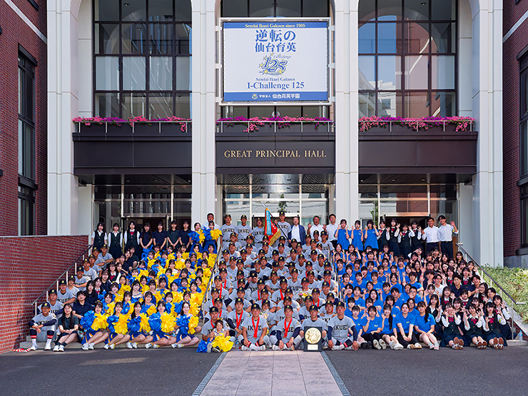 7月28日(月)、第107回全国高校野球選手権宮城大会の決勝が楽天モバイルパーク宮城で行われました。対戦相手の東北学院榴ケ岡に10―0で勝利し、2年ぶり31回目の甲子園出場を決めました。翌日29日、宮城野校舎ゼルコバホールで優勝報告会と出場壮行会が開催され、全国の強豪を相手に戦う野球部員たちに生徒たちから祝福とエールが贈られました。
