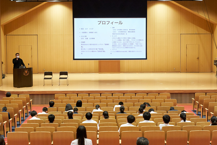 講演では、建築士の仕事内容や、実際に一級建築士になるにはどのような資格を取ればよいのかを具体的にお話していただきました。