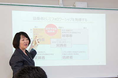 午後は佐藤氏による講義が行われました。講義の中で「皆さんの資質はミラーボールのように、光の当たり方で輝き方が変わります。状況に応じて異なる資質を意識的に発揮できるはずです」と話してくださいました。また、ペーパータワーの作成とマシュマロタワーの作成をテーマに、役割を分担してチームで課題に取り組む活動も行われました。