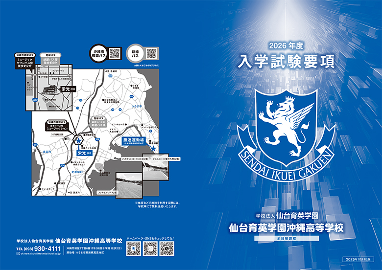 仙台育英学園沖縄高等学校 2026年度入試要項が完成しました。下記のリンクから要項データをご覧いただけるほか、提出書類のダウンロードもご案内しています。ぜひご覧ください。