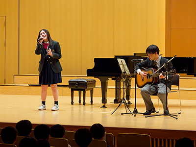 午後から開始されたゼルコバホールでの第3部では、吹奏楽や三味線の合奏、合唱部・オーケストラ部の発表、生徒個人によるピアノ独奏や二重唱など、音楽を中心に多彩なステージが展開しました。生徒たちはこの日のために練習を重ね、日々の努力と成長を堂々と披露しました。