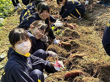 10月23日、東和蛍雪校舎にて、秀光中学校1年生の農業体験が行われました。このサツマイモは、5月の東和蛍雪校舎研修で生徒たちが植えた苗が成長したものです。良い天気に恵まれ、サツマイモも大収穫となり、生徒たちは楽しく活動しました。