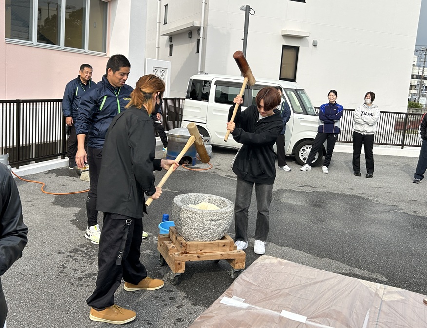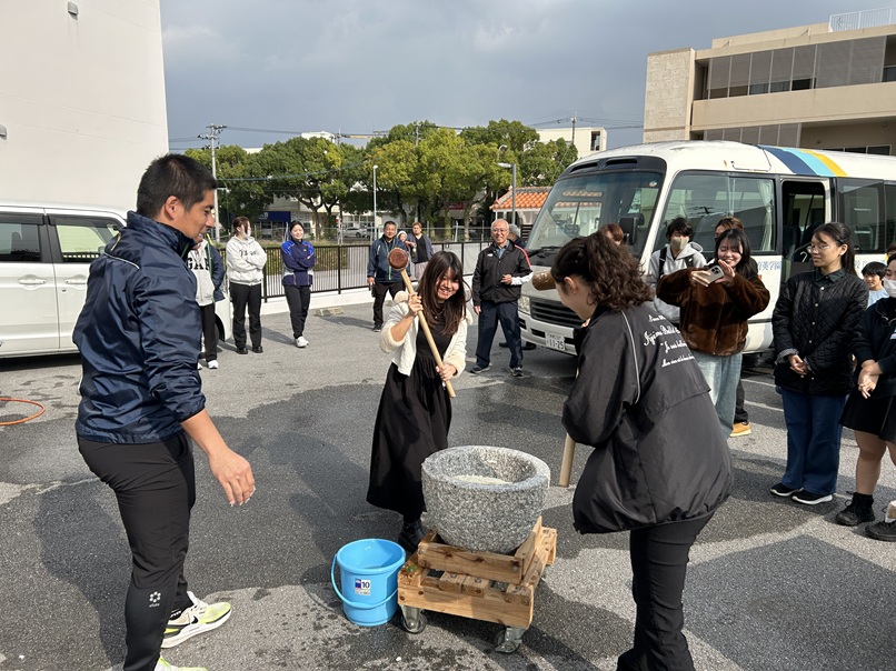 2026年1月7日(水)に沖縄高等学校とILC沖縄の生徒・保護者とそのご家族の皆様、近隣住民の皆様、そして教職員一同で「新年もちつき会」を開催しました。今年一年の無病息災を祈念しながら、参加者全員で交互にもちをつき、様々な種類の味付けをして美味しくいただきました。沖縄高等学校・ILC沖縄では、様々な行事を通して、日本古来の文化や伝統を重んじるような学ぶ機会を設けております。どうぞ今年も沖縄高等学校・ILC沖縄を何卒よろしくお願い申し上げます。