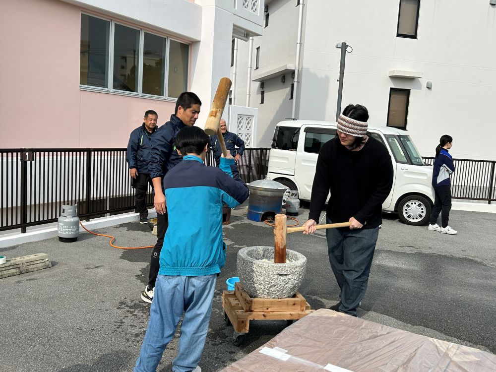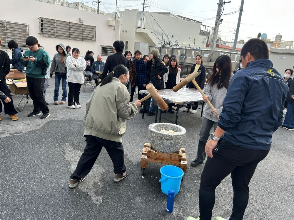 2026年1月7日(水)に沖縄高等学校とILC沖縄の生徒・保護者とそのご家族の皆様、近隣住民の皆様、そして教職員一同で「新年もちつき会」を開催しました。今年一年の無病息災を祈念しながら、参加者全員で交互にもちをつき、様々な種類の味付けをして美味しくいただきました。沖縄高等学校・ILC沖縄では、様々な行事を通して、日本古来の文化や伝統を重んじるような学ぶ機会を設けております。どうぞ今年も沖縄高等学校・ILC沖縄を何卒よろしくお願い申し上げます。