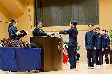 あなたは中学校3年間を通し、学業全般において優れた成果を納め、本校の学びを体現する存在として歩んできました。その歩みの集大成の一つとして、高円宮杯第76回全日本中学校英語弁論大会において、全国第4位という輝かしい成績を収め、確かな英語力と豊かな表現力を広く示しました。この成果は決して舞台上の一瞬だけで成し得たものではなく、積み重ねてきた努力のすべてが、この結果へとつながっています。