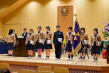 これからの人生には、困難に立ち向かう時もあるでしょう。しかし、その時こそ、今日ここに立つ私たちの今の気持ちと、支えてくださったすべての方への感謝を胸に歩んでまいります。そして、IB MYPで培った探究心と多様な価値観を大切にし、これからのグローバル社会に貢献できる人間へと成長していくことをここに誓います。