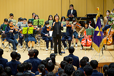それは、3年間で3629時間の学習に取り組んだことです。これは標準的な学習時間より584時間多く、約半年分にあたります。皆さんは秀光中学校で3年半分の学びを積み重ね、国際バカロレアMYPの学習を通して、特に自己管理力などの力を大きく伸ばしてきました。また、Language・Music・Scienceという三つの見方・考え方を身につけ、世界とつながるための基礎を培いました。
