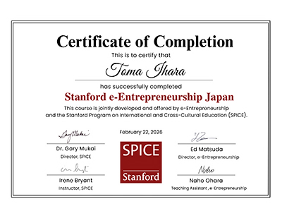 秀光コース伊原さんがStanford e-Entrepreneurship Japanで東北地域から史上初の修了生に
