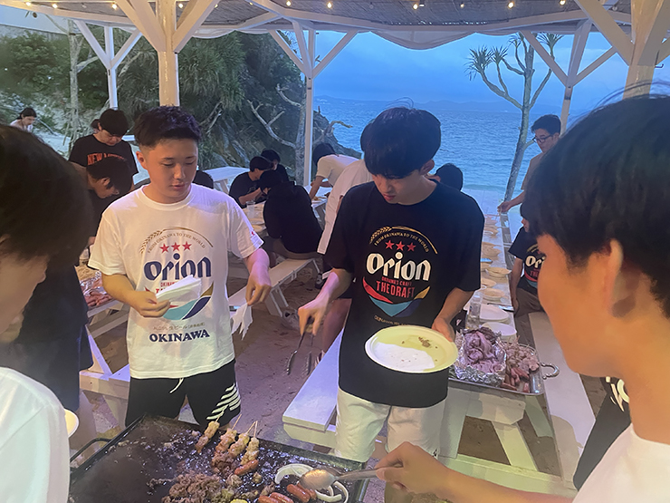 夕食は、貸し切りビーチにてバーベキューを堪能しました。クラス毎に自分たちで役割分担をし、協力しながら夕食を楽しんでおりました。