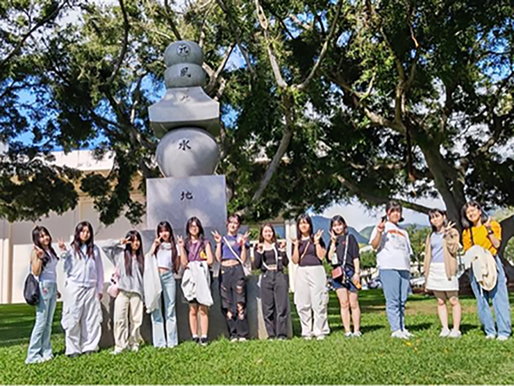 大学内で昼食をとったあと、皆でキャンパスツアーをしました。Angel先生の指示に従いポイント毎に様々なポーズをとりました。大学生に声をかけ、一緒に写真を撮る場面もありました。講義の振り返りで、道案内に役立つ英語を用いました。キャンパスの広さに驚く生徒が多かったです。現地の大学を周回することは、 生徒たちにとって大変貴重な体験になりました。-