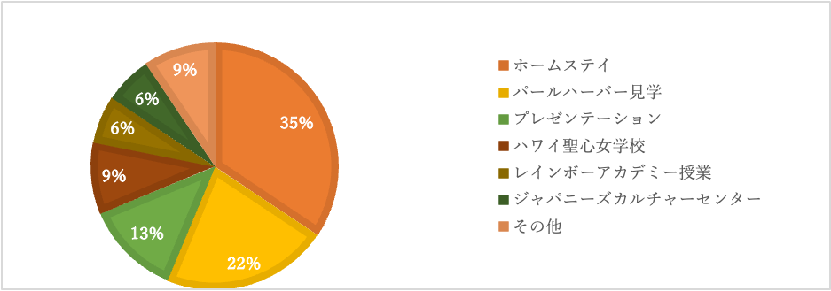 新しい人と出会うことをでき、最後のプレゼンテーションでもすごく英語のスキルが上がったと思います。また、ハワイの公用語は英語で、コミュニケーションスキルも成長したと思います!