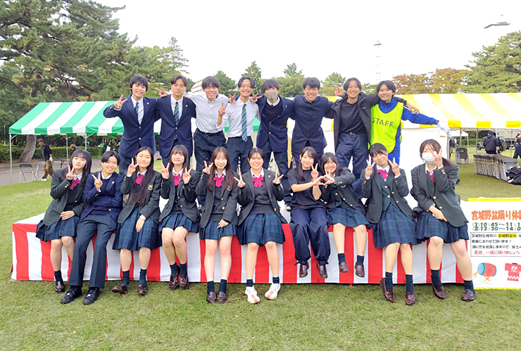 当日参加したのは、生徒会、女子サッカー部、ラクロス部、美術部、インターアクト部、軽音楽部、よさこい愛好会、ダンス同好会。生徒たちの様々な企画に、たくさんのお客様が来てくださいました。宮城野区役所の職員の方々から「高校生特別企画のおかげ」と、嬉しいお言葉をいただきました。実行委員会の皆様からも称賛の声を多く頂き、お祭りは大成功で終わることが出来ました。