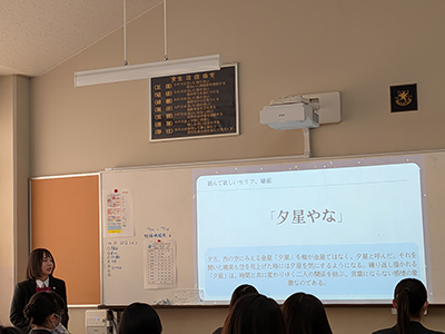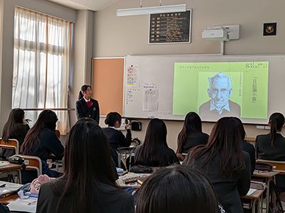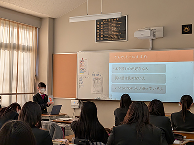 クラス代表の発表者たちは、作品の背景や著者の思いを深く読み取り、自分の言葉で熱意をもって紹介しました。説明はわかりやすく、聞き手とのやり取りも交えながら、会場は温かな対話の場となりました。