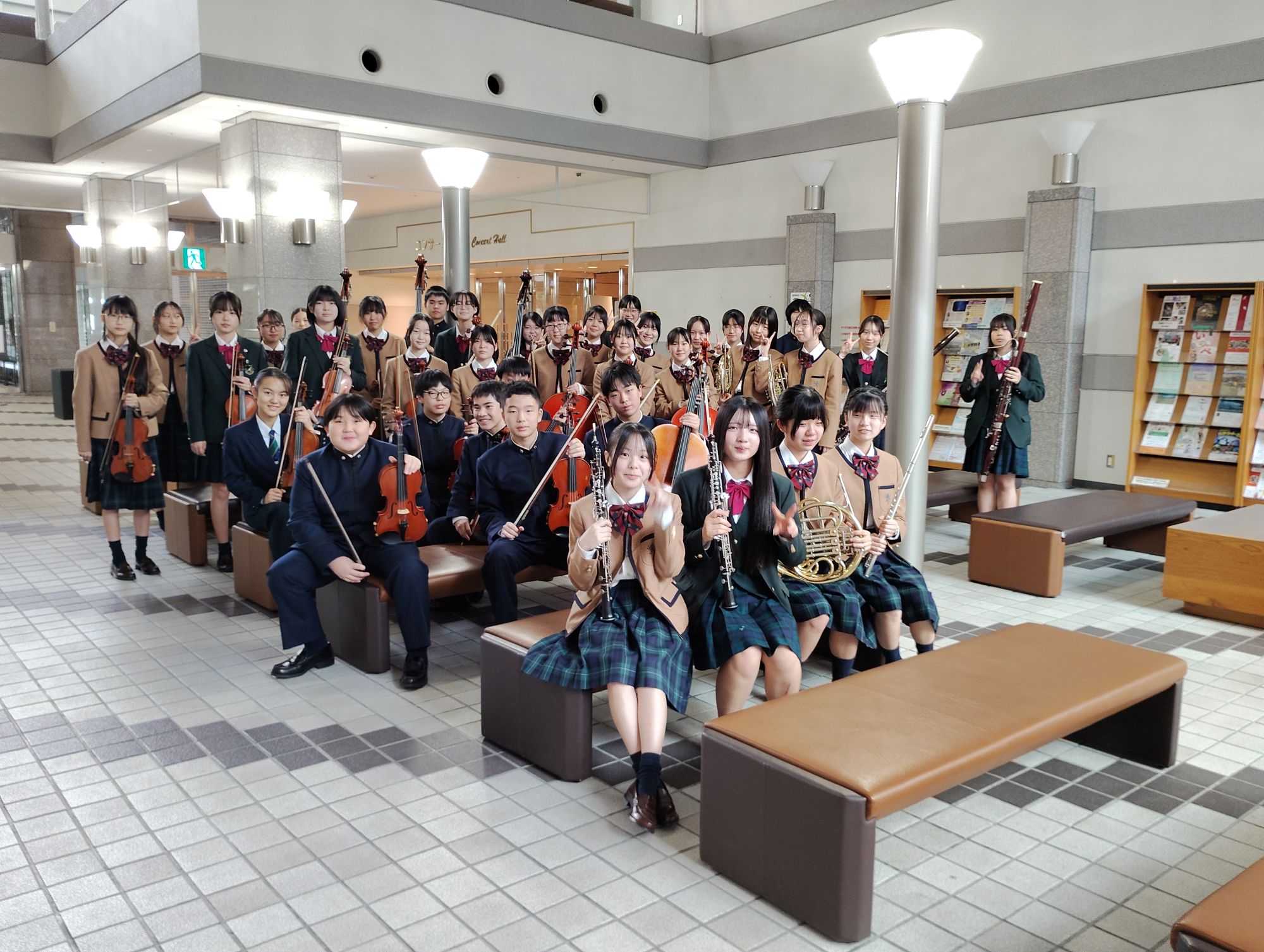 | Topics | 飲酒運転撲滅運動の一環として山形交響楽団または仙台フィルハーモニー管弦楽団とのジョイントコンサートを実施 宮城県高校音楽祭 , 全国高等学校オーケストラ連盟主催のオーケストラフェスタに参加 障がい者施設や介護施設などへ訪問演奏を積極的に行っています 2023.6.5 STAND飲酒運転撲滅仙台育英学園&仙台フィルハーモニー管弦楽団ジョイントコンサート行われました。 2023.10.7 仙台育英学園高等学校育英祭に参加しました。 2023.10.21秀光中学校・仙台育英学園高等学校秀光コースの秀光祭に参加しました。 2023.10.30宮城県高等学校音楽祭に出場.2024全国高等学校総合文化祭器楽・管弦楽部門の宮城県代表に選出されました。 2024。5.18 PTA総会アトラクションで演奏しました。 2024.7.28 フレッシュコンサートを実施しました。 2024. 9.30 日本ウクライナ芸術祭が本校で開催 2024. 10.12 令和6年度 育英祭で演奏しました。 2024. 10.19 第29回 秀光祭で演奏しました。 2024. 10.23 宮城県高校音楽祭に出場しました。 2025年 全国総合文化祭器楽管弦楽部門宮城県代表に選出されました。 2024. 12.25 全日本中学生・高校生管打楽器ソロコンテストに中学3年 鯨井璃緒さんがクラリネット部門に出場 2024. 12.28 第31回全国高等学校オーケストラ連盟オーケストラフェスタに出場しました。 2025.3.19 ラヴィーレ東仙台へ演奏訪問 3月お誕生会アトラクションで演奏しました。 2025.4.27 STAND飲酒運転根絶仙台育英学園&仙台フィルハーモニー管弦楽団ジョイントコンサートありがとうございました。 2025.7.20 フレッシュコンサート(新入部員演奏デビュー)オークルームで開催しました。 2025.7.25~27 全国高等学校総合文化祭香川大会 器楽・管弦楽部門に出場しました。 キラリ☆Sweat&Smile Vol.10 秀光オーケストラ部 |