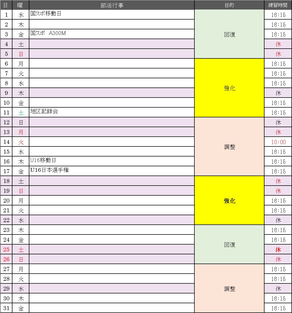 陸上競技部(短距離)陸上競技部11月の活動予定