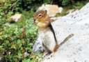 カナダで初めて見た野生動物です。ペイトレイクで見かけました。シマリスによく似ていますが、縞模様の場所が違います。乗馬中と学校でも見ましたよ。