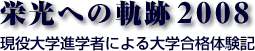 大学合格を目指すなら、目標をしっかり定めることが大事だと思います。そして1日1日を大切に、計画性のある日々を過ごしていくことが大切です。目標をしっかり定め、それを達成していく。達成したその先には自分が希望している進路への道が広がっているかも知れません。努力を惜しまず、自分がやっていることを信じ、前に進んでいくことが大切です。前に進むには、周囲の人々からの応援や助けがあることにも気づきます。私を支えてくれた全ての方々に感謝したいです。