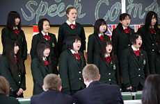 スピーチが終わると1年生全員で『I will follow him』を合唱。全員で手拍子をしながら歌い、楽しい時間となりました。