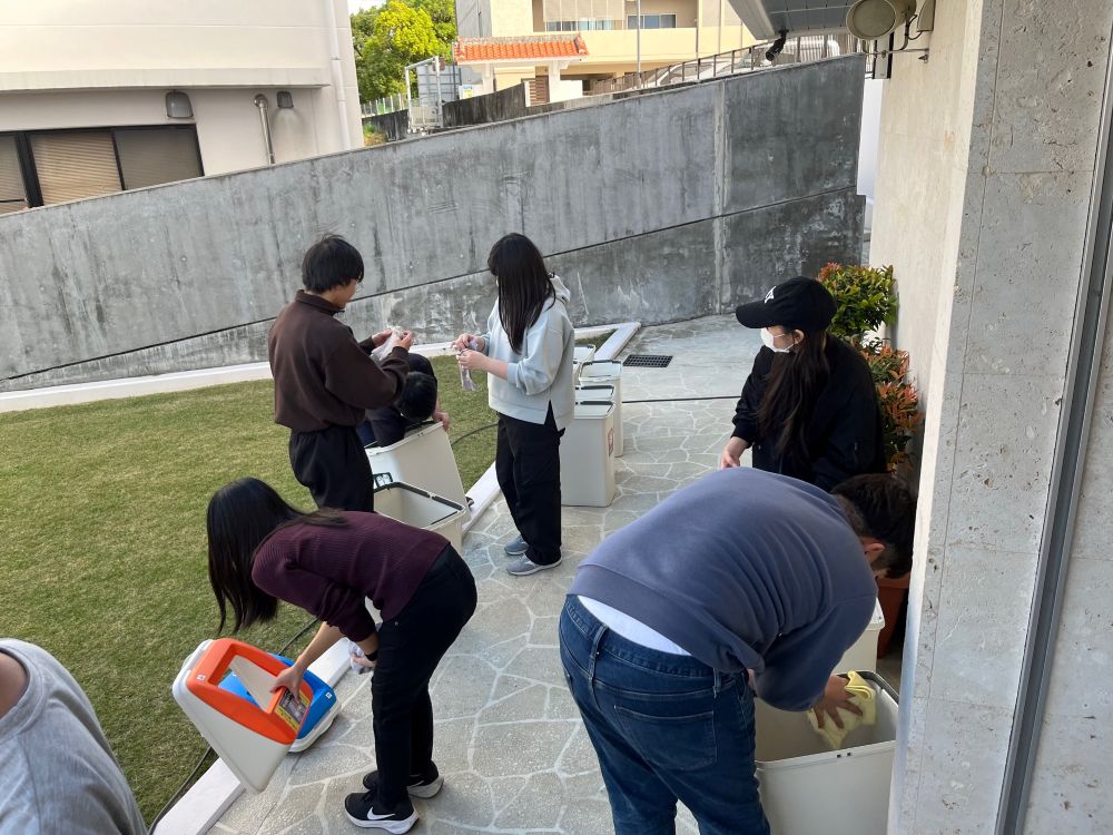 2025年12月27日(土)に毎年恒例、日頃お世話になっている施設の年末大掃除を行いました。今年は、スクーリングで使用している「栄光校舎」および体育実技スクーリングで使用している「勝連運動場」の2か所の清掃を実施。今年も参加生徒を募ったところ、29名の生徒が参加してくれました。生徒たちは事前アンケートで清掃場所を選択し、それぞれの場所で生活信条「奉仕」と「感謝」を持ちながら真剣に清掃に取り組みました。生徒たちの努力のおかげで施設はとても綺麗になりました。疲れた様子も見られましたが、清掃後のきれいになった施設を見て満足そうな表情を浮かべていました。