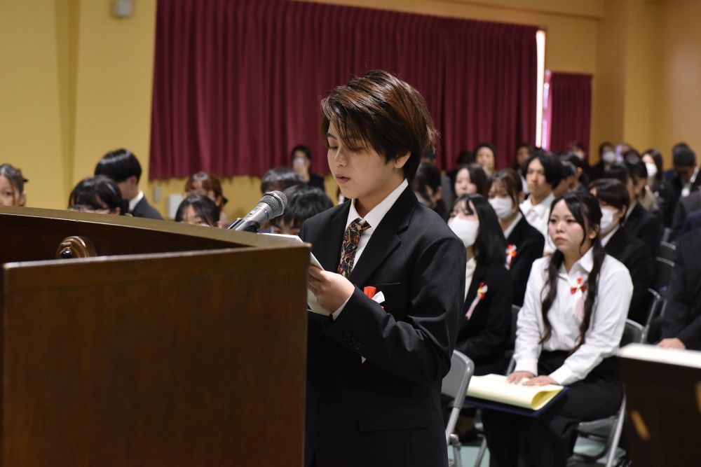 卒業生代表答辞では、嘉陽里音さんが「学校生活を支えてくれ、将来の夢を応援してくれたお父さん、お母さん。授業だけでなく、私生活で嬉しかったことや悩みを聞いてくれた先生方。学校で会うたびに名前を呼んで挨拶してくれた職員さん。私がカラオケなどに誘ったときに快くついてきてくれたり、学校でお話してくれたり、一緒に行事を楽しんだりしてくれた友人たち。たくさんの方々のおかげで、楽しくて大切な高校生活を送れました。本当にありがとうございました」とILC沖縄で成長した日々を述べてくれました。