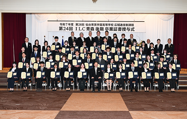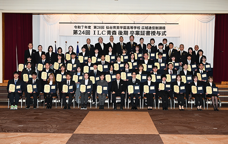 3月2日(月)、仙台育英学園高等学校広域通信制課程ILC青森の令和7年度第24回後期卒業式が、八戸グランドホテルで執り行われました。式では、加藤雄彦校長先生より卒業生130名に向けて、温かな激励の言葉が贈られました。卒業生たちは、この春からそれぞれの新たな一歩を踏み出します。