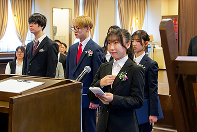 本日は私たちのために、このように盛大な卒業式を挙行していただき、心より感謝申し上げます。また、加藤雄彦 理事長校長先生より大変温かいお言葉をいただき、卒業生を代表して厚く御礼申し上げます。