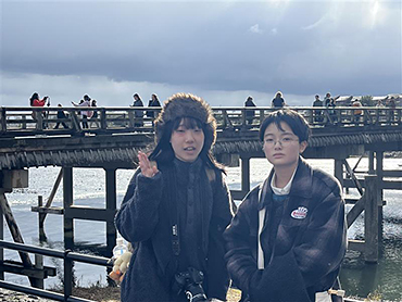 研修旅行で印象に残ったのは、2日目と3日目に京都の錦市場・祇園・嵐山を巡ったことだった。錦市場では多くの店が並び、京都ならではの食文化や活気を感じることができた。祇園では落ち着いた町並みが印象的で、歴史ある街の雰囲気や八坂神社の荘厳さを体感した。嵐山では冬の静かな自然と美しい景色を楽しめ、京都の魅力を存分に味わえる修学旅行になった。