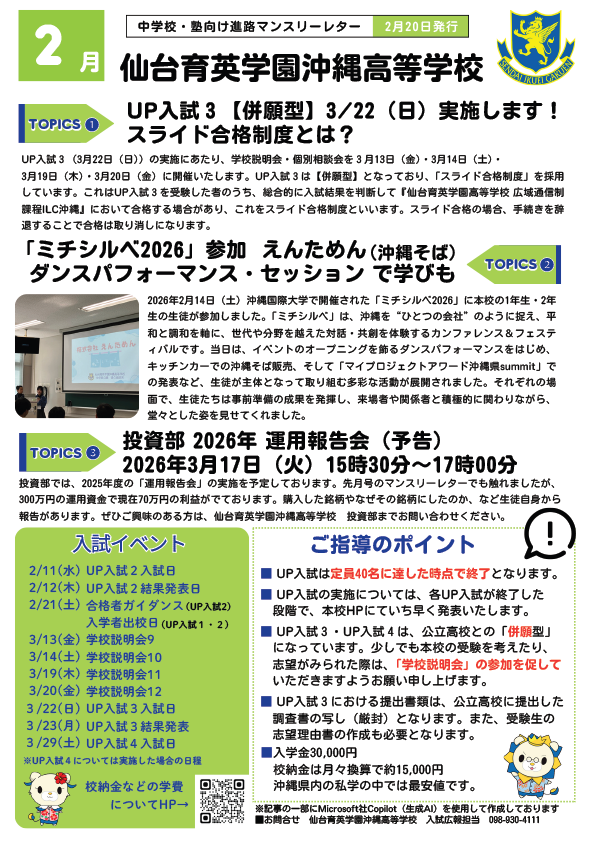 中学校・学習塾の先生方に向けたマンスリーレターを掲載しています。