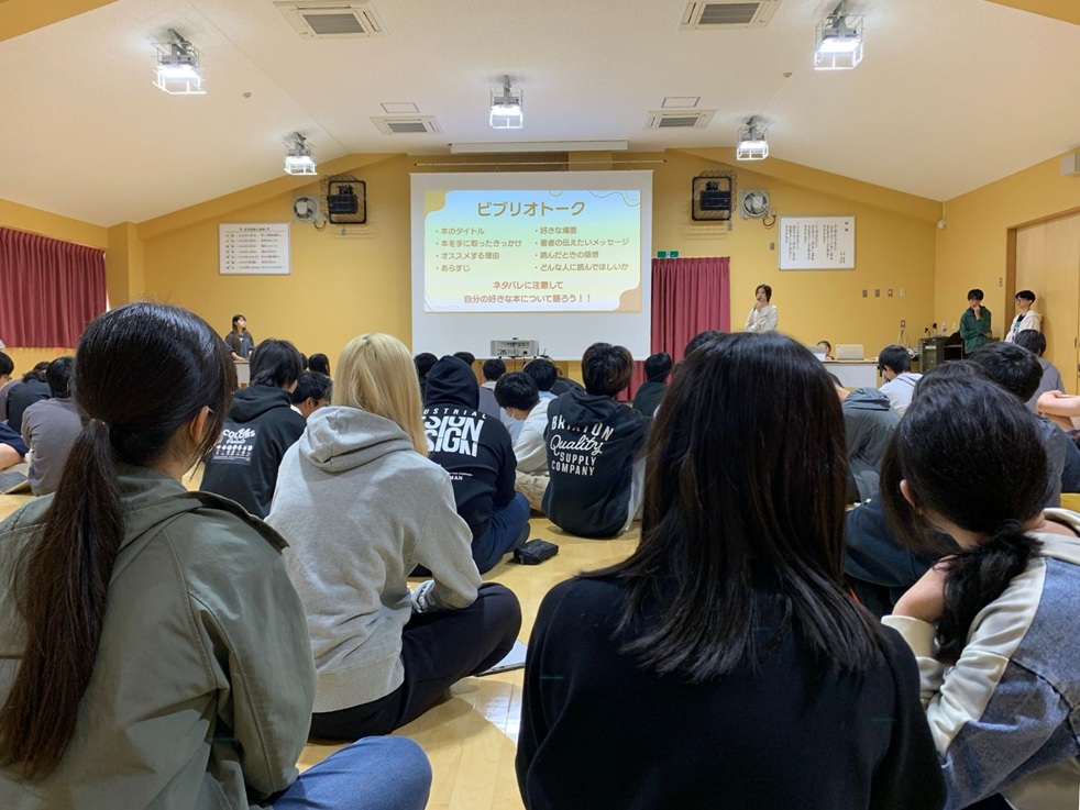 2026年1月19日(月) 栄光校舎体育実習室にて、沖縄高等学校の全学年を対象に「読書部イベント」を開催しました。その目的は、読書部が実施した「読書に関するアンケート」の結果、図書室の利用率低下や読書離れが判明したことを受けて、『不読率の改善および生徒が図書室へ足を運ぶきっかけ作りとして、図書の魅力や読書に対する前向きな捉え方を推進するため、参加型のイベントを企画しました』【読書部 行事企画書より】当日の運営は、すべて読書部の部員が予算立て、企画運営、司会進行、学年を跨いだグループ分けを行い「付箋しりとり」「ビブリオトーク」「BOOKクイズ」「推理ゲーム」など、読書や本にちなんだ多彩なプログラムが用意され、参加した生徒たちは、学年の垣根を越えて真剣かつ楽しみながら交流を深めていました。また、特別ゲストとして沖縄県教育庁の知念様にご来校いただき「読書に対して、このような素晴らしい取組みをされていることをぜひ全国にも発信したい。これからも読書部の活躍を期待しています!」と、温かい激励のお言葉をいただきました。読書部では、1月20日から図書室でも独自イベントを開催するなど、さらなる利用率の向上に向けて取組んで参ります。