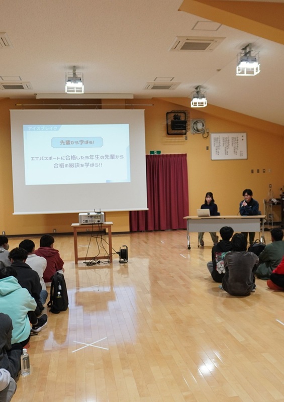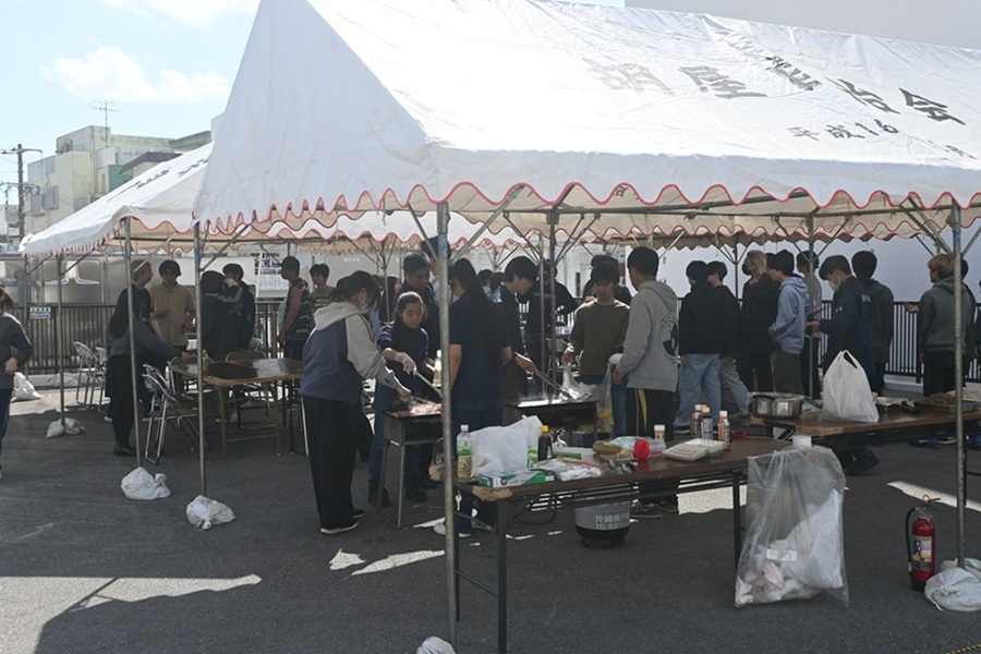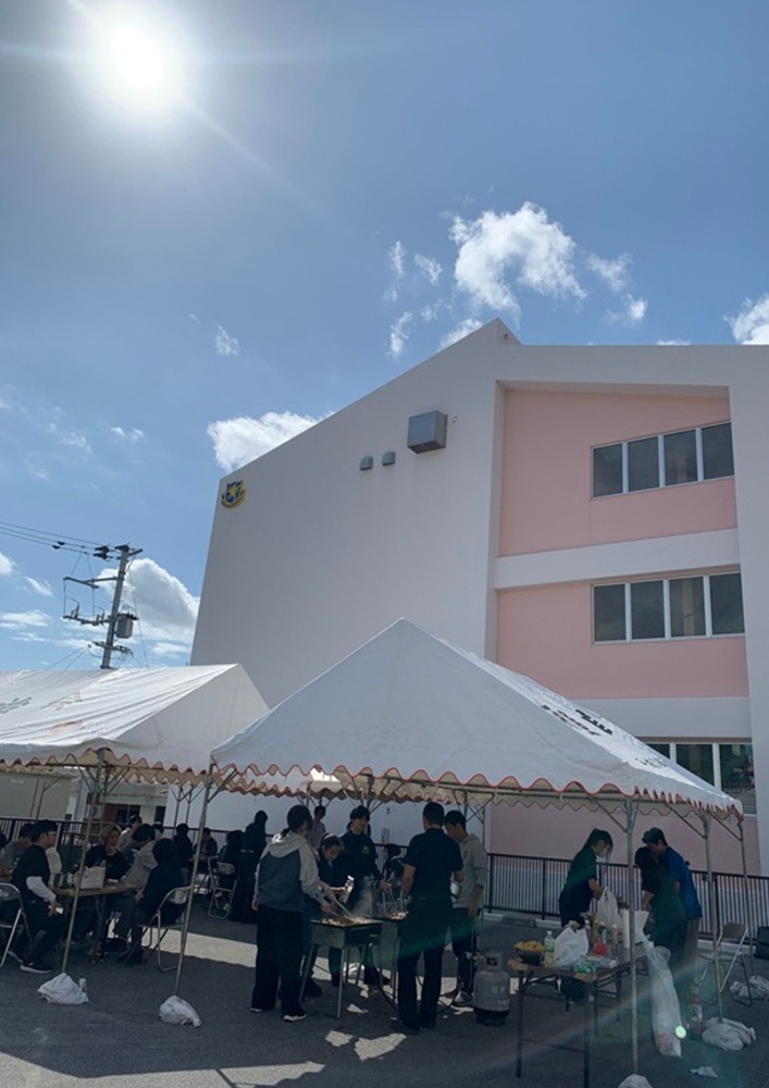 2026年1月30日(金)仙台育英学園沖縄高等学校 栄光校舎 生徒会執行部を中心に企画された本交流会は、企画立案から渉外、予算立て、運営、買い出しに至るまで、在校生1年生から3年生までの全学年が関わり、全員が楽しめるよう工夫と準備を重ねて実施されました。当初は学校側との調整や校内での合意形成に苦労する場面もありましたが、生徒会執行部が中心となって一つひとつ課題を乗り越え、無事に開催することができました。冒頭のアイスブレイクでは、卒業を間近に控えた1期生の先輩である諸見里さん、國吉さんを招き、「ITパスポート合格の秘訣を学ぼう!」をテーマに、パネルディスカッション形式でのインタビューを実施しました。先輩たちの経験談に、在校生は熱心に耳を傾けていました。BBQで使用する肉や焼きそばの麺は、うちなー育英祭で築いた地域とのつながりを生かし、地元の精肉店および製麺所に協力を依頼して準備しました。学年を越えたグループで食事を楽しみながら、イントロ当てクイズやビンゴ大会などのイベントを通して、先輩・後輩の交流も一層深まりました。最後は参加者全員で記念撮影を行い、交流会は盛況のうちに終了しました。生徒会執行部内では反省点の共有や次につなげるための振り返りも行われており、今回の経験を今後のさらなる挑戦に生かしていくことが期待されます。生徒会執行部の皆さん、本当にお疲れ様でした。