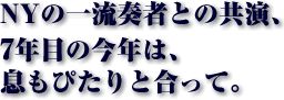 ニューヨーク・シンフォニック・アンサンブルは、メトロポリタン・オペラ・オーケストラのメンバーをはじめ、米国ニューヨークを中心に第一線で活躍している演奏家で構成され、指揮者の高原守氏が率いています。秀光中等教育学校とのジョイント・コンサートは、NYSEの「世界中の若き演奏家を育てる」というユニークな活動の一環として1998年から行われています。