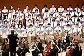 NYSEと秀光3・4年生混声合唱団とのジョイントには、合唱好きの保護者有志のみなさんも参加。NYSEの美しいハーモニーに包み込まれたやさしい歌声で、会場には静かな空気が流れました。