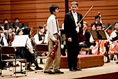 秀光オーケストラは今年はホルストの「木星」に挑戦。とても難しい曲で相当苦労したようですが、本番は迫力ある演奏を披露。曲のクライマックスもビシッと決まり、観客から大きな拍手を浴びました。ステージ上では、曲の合間に軽く会話を交わしたり、顔を見合わせたりと秀光生とNYSEのメンバーはすっかり打ち解けた様子でした。