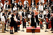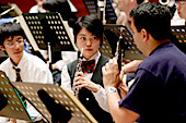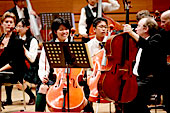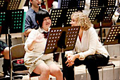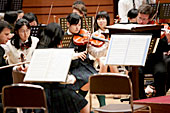 アンコールは、「ハリー・ポッター」の映画で使われたテーマ曲。なじみのある曲の本格的な演奏に会場は盛り上がりました。演奏が終わるとステージ上でNYSEのメンバーと握手を交わす生徒もいたりと、生徒たちにとっても大満足のジョイントコンサートだったようです。