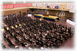 4回生の皆さんには特別な思い出があります。ユーロスクールでの出来事です。みなさんがヨーロッパ大陸からイギリスへ移動しようとしていたまさにその日9月11日、アメリカにおいて同時多発テロが発生しました。そんな中で、皆さんや保護者の方々は大変な思いをされたことでしょう。ですが私は、皆さんが無事で誰一人欠けることなく帰って来てくれたことを誇りに思っています。