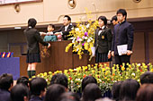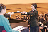 この日、卒業証書を授与された卒業生の数は60名。秀光中等教育学校の前身である秀光中学校が誕生して以来の4期生となります。会場に出席した卒業生の1人ひとりに卒業証書が校長先生から手渡され、その後、「加藤利吉成績優秀賞」「精皆勤賞」「特別