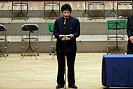 | 4. 校長先生のお話 「仙台育英学園は明治38年に育英塾ができて今年で100年になります。その100年の年に秀光が10年を迎える、そのような計画をしてこの学校を作ってきたのですが、みなさん方の様子を見ていて、10年前の私の想像を超えるような立派なものを築いてくれていること、大変嬉しく思いますし、誇りに感じております。今日は普段の努力してきた成果 を思う存分発揮してくれることを願っております」 |