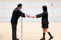 赤間さん 「昨日行われた合唱コンクールは“多くの人に見てほしい”と強く思う一日でした。今日は2年生から5年生までの合奏、オーケストラの演奏、そして自由研究論文の優秀賞の発表があります。ある人にとっては最初の、ある人にとっては最後の秀光祭。ここにいる生徒のみなさんが大人になって秀光祭の舞台を仲間を思い出すとき、自然と顔がほころんでくるようなそんなステージを創り上げたいと思います」 |