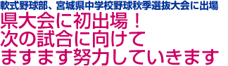 | 秀光軟式野球部が中体連多賀城市新人戦、さらに中体連・ブロック大会を勝ち抜いて、見事初出場を果たした「第18回宮城県中学校野球秋季選抜大会」。試合は11月1日・2日、シェルコムせんだいを会場に行われました。秀光は塩釜・多賀城・宮城郡・黒川郡代表として1日の第4試合に出場。接戦のすえ、3対2で惜しくも初戦で敗退しました。 2年生の選手の感想をここに紹介します。 【試合を振り返って】 今日は自分たちの力が及ばず負けてしまいました。しかし今日の試合に出場できたこと、ここまで勝てたことはいろいろな人のおかげなので、とても感謝しています。負けたという現実を受け止めて、言い訳なんか絶対にしないでこの負けを強さに出来るよう、負けた理由を考えてみます。 負けた理由はまず、事前に最高の準備が出来ていなかったことだと思います。試合前に「まあいいか」と思うことがあったり、午前のノックでも集中していませんでした。 次に、努力で防げることが防げなかったことです。カバーや声をかけることが十分ではなかったし、グラウンドの状態やフェンスの跳ね返り具合を確認出来ませんでした。また、チャンスで一本が出ませんでした。 それからもうひとつ、いい顔で野球ができなかったことも考えられます。2点をとられたときにすごく暗い顔になり、良くない雰囲気になってしまいました。 まず、生活のことで誰が見ても本物と思われるように今までの何倍も当たり前のことをしっかりやろうと思います。 個人的には試合に出られるように自分の無限の可能性を信じて努力します。今日の試合で学んだことは、自分たちは弱いということ、まだまだ努力が必要だということだと思います。 |