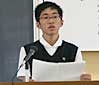 最優秀賞を獲得したのは、2年生の横田さん。「存在の大きさ」というタイトルの弁論は、2年前にお祖父さんを病気で亡くしてからあらためてその存在のかけがえのなさを実感したという、自らの体験をもとにしたもの。「今、目の前にいる人に優しく」というメッセージを伝えました。横田さんは「そのためにはまず始めに、身近すぎてつい強く当たってしまう人、たとえば家族に対して、優しくすること」と主張。「そしてどんな人にも優しく接し、出会った人ひとりひとりがかけがえのない存在であることを忘れず、大切にしていかなければならない」と力強く、堂々と述べました。