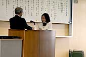 聴衆の生徒たちも発表を聴きながら「論旨」「表現」「態度」などを評価しました。審査用紙には、良かったと思う点、工夫したほうがよいと思う点などが書き込まれ、終了後、発表者にアドバイスとして伝えられます。