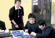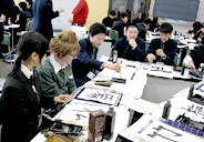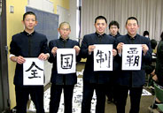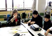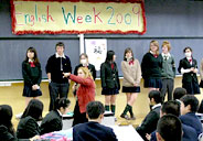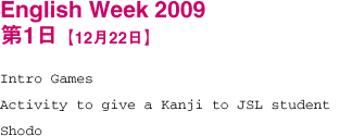 第1日は、リズムに合わせて英語で自己紹介するIntro Game からスタート。この自己紹介から秀光生がそれぞれの留学生にふさわしい文字(漢字)を考え、留学生に教えました。それから留学生、秀光生が一緒になってそれぞれ自分が選んだ一文字で書道をおこないました。