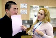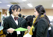 おなかがいっぱいになったあとは、Bing Gameの時間。ですが、Bing Gameとはいっても、English Weekでのそれ。秀光生、留学生がみんなで英語による質問を出し合い、Yesと答えられた個所を埋めていき、列がそろったら“Bingo!”という英語をフルに使ったゲーム。お餅つき以上に盛り上がりました。