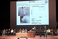 コンテストは、1チーム6分の持ち時間で加速度センサーなどを使って試作した電子機械の操作をステージ上で実演し、機能についてのプレゼンテーションを行い、そのアプリケーション(電子機械)の独創性や実用性などを競うものです。