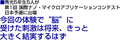 秀光5年生5人が、工学系の“世界コンテストへの挑戦”というとてもユニークな体験をしました。
