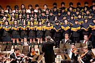 秀光混声合唱団は、モーツアルトの合唱曲で共演。今年は秀光3、4年生と仙台育英学園保護者有志などによる総勢170名による大合唱団となり、ホールいっぱいに迫力のあるハーモニーが響き渡りました。