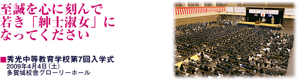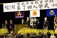 新入生宣誓では新入生代表の佐藤さんが、これから始まる新たな学校生活に向けて「『至誠、質実剛健、自治進取』、3つの言葉を心に刻み、この秀光中等教育学校で将来の自分の目標を見つけたいと強く思います。私達には無限の可能性がある、そう信じさせてくれるものがこの学校にあるように思えます。この学校で学んでいくこれからの6年間への期待に、私たちは胸を大きく膨らませています」と抱負を述べました。