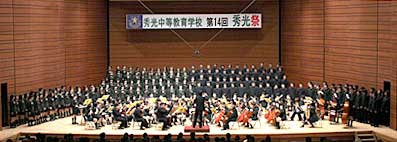 今年は新型インフルエンザが猛威をふるい、 我が校でも自宅学習日が続きましたが、 無事第14回目の秀光祭を開催することができました。 インフルエンザの影響により練習時間が非常に少ないなか、 朝や放課後の練習では生徒同士で協力し最高のステージを 作り上げるために努力してきました。 本番では合唱の部、合奏の部共に全てのクラス、 学年が練習の成果を存分に発揮できたと思います。 個人の力だけではなく、 仲間と一つのものを作り上げるすばらしさ。 この秀光祭で得た感動を心に刻み、 さらに充実した学校生活を送っていきたいと思います。 秀光祭実行委員長 岩本(秀光5年) |