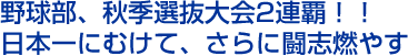 11月7日(日)、“シェルコムせんだい”(仙台市泉区)で行われた『第20回 県中学校野球秋季選抜大会』決勝戦において、秀光軟式野球部が2年連続2度目の優勝を果たしました!!